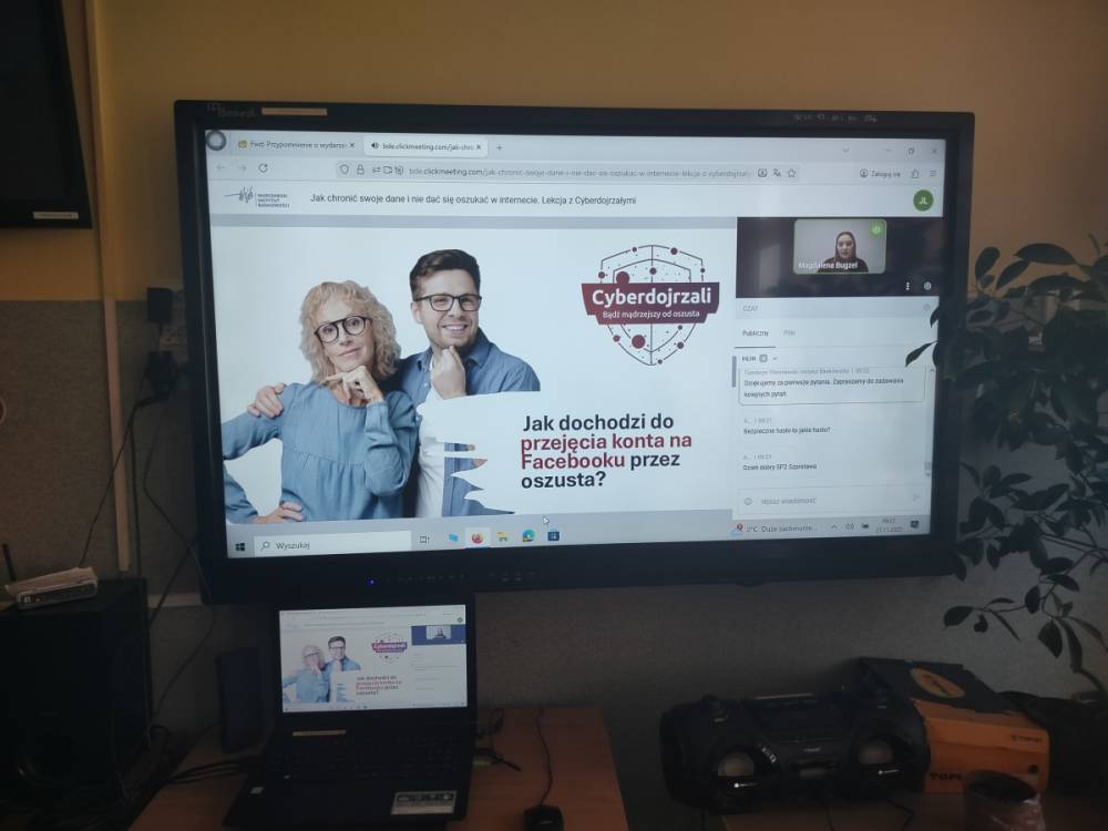 27 listopada klasy VI – VIII wzięły udział w ogólnopolska lekcja online: „Jak chronić swoje dane i nie dać się oszukać w internecie. Lekcja z Cyberdojrzałymi”.