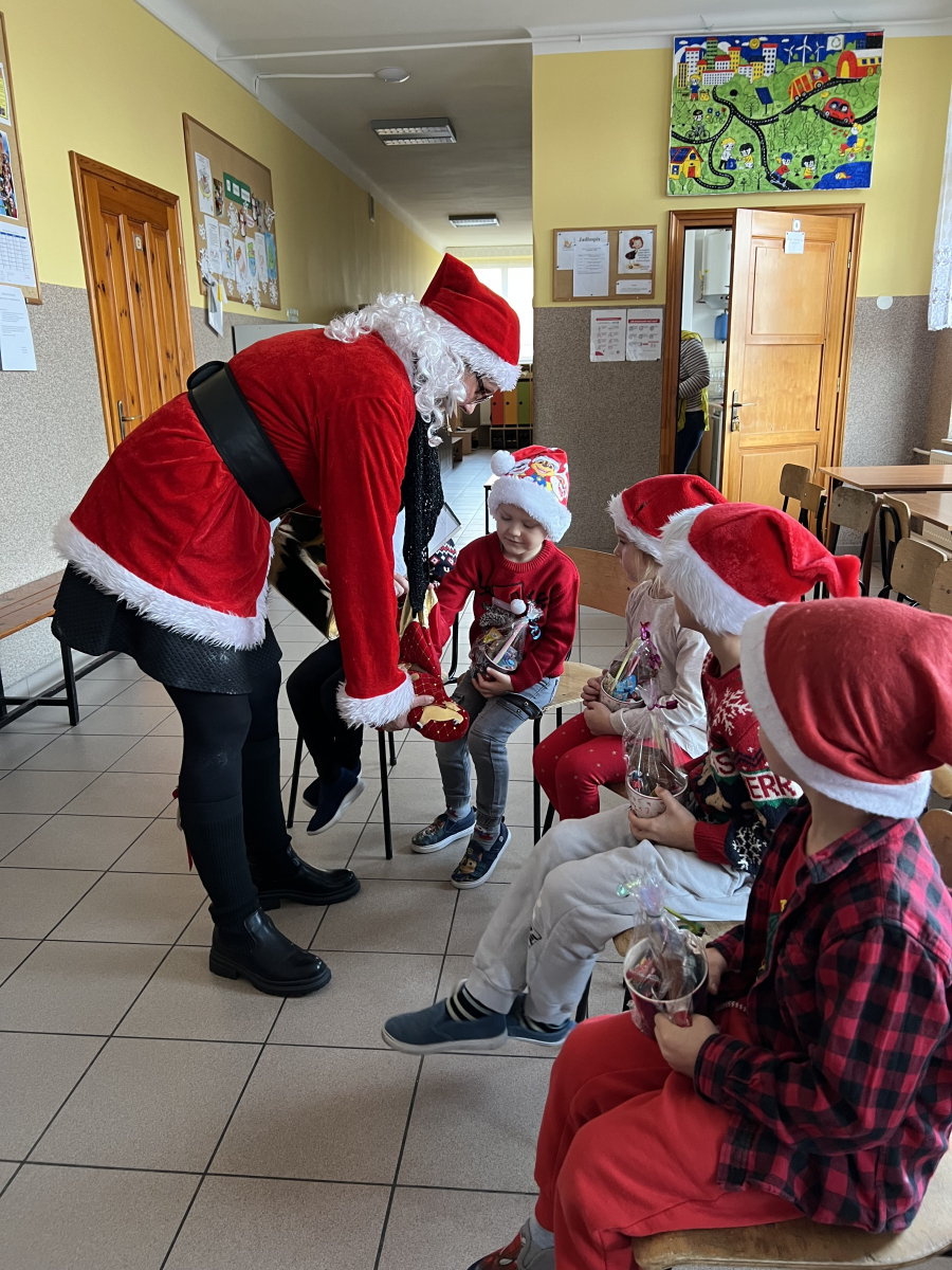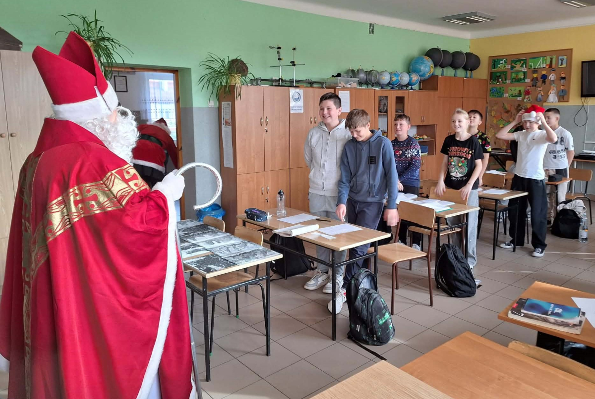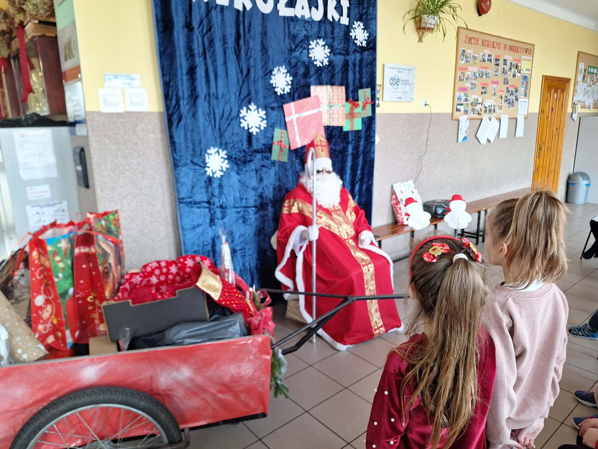 Jak co roku, tak i w tym do naszej szkoły zawitał Święty Mikołaj wraz ze swoim orszakiem. Długo oczekiwany gość wywołał radość na twarzach dzieci. Święty Mikołaj został powitany piosenką i wierszykami. Swoją wizytę rozpoczął od najmłodszych dzieci, a potem udał się do starszych.. Okazało się, że wszyscy byli grzeczni i zasłużyli na nagrodę, więc każde dziecko otrzymało prezent. Uśmiech i radość dzieci to najlepsza pamiątka tego wesołego dnia z życia naszej społeczności szkolnej.