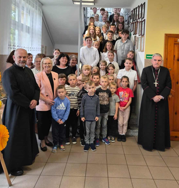 W ramach wizytacji kanonicznej naszej parafii w dniu 24 października gościliśmy w naszej szkole Jego Ekscelencję Biskupa Sandomierskiego Krzysztofa Nitkiewicza. W imieniu wszystkich uczniów naszego Gościa przywitali: przewodnicząca SU Kornelia i za-ca przewod. Bartek, a wszyscy uczniowie radośnie zaśpiewali dla Księdza Biskupa „Witamy Cię, alleluja”. Następnie biskup spotkał się z gronem pedagogicznym. Było to bardzo miłe, radosne i piękne spotkanie.