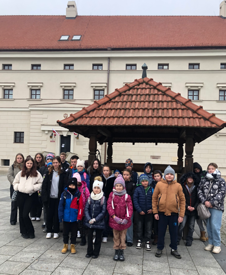 Dnia 2 listopada uczniowie naszej szkoły wraz z opiekunami udali się na wycieczkę do Sandomierza, aby zwiedzić Zabytkowy Zamek Królewski oraz poznać historię tego wyjątkowego miasta. Wyjazd rozpoczął się wczesnym rankiem – wszyscy stawiliśmy się punktualnie i w dobrych humorach. Po przybyciu na miejsce powitały nas panie przewodniczki, które oprowadziły nas po kolejnych salach muzealnych opowiadając o burzliwej historii budowli, jej średniowiecznych właścicielach oraz ważnych wydarzeniach związanych z regionem. Oglądaliśmy liczne eksponaty, m.in. dawne narzędzia, broń, stroje oraz elementy wyposażenia z różnych epok. Pani przewodnik zwróciła uwagę na kilka perełek, które są unikatowe i nie znajdziemy ich w żadnym innym miejscu w Polsce. Są to m.in .szachy sandomierskie, kopia korony hełmowej oraz niezwykła kolekcja krzemienia pasiastego – kamienia wydobywanego wyłącznie w tym regionie.